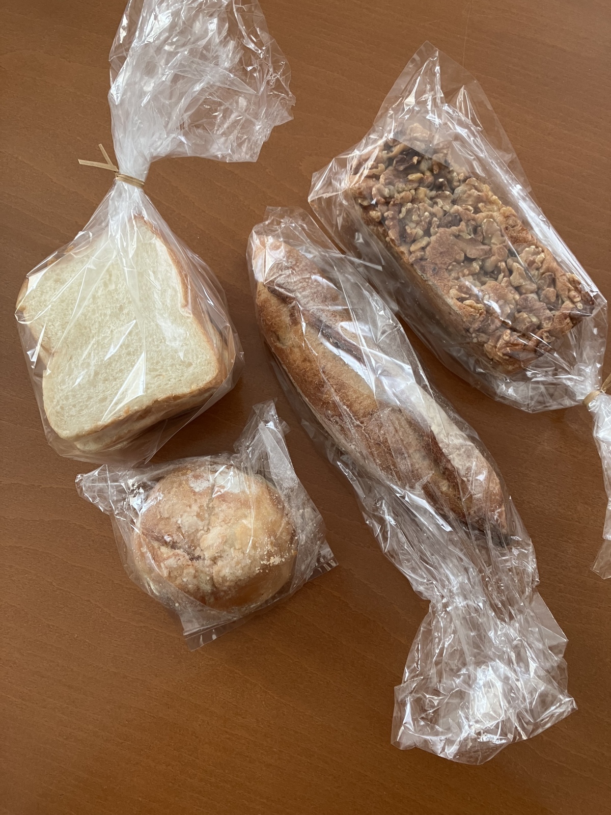 サコッシュ山型食パン1本580/クルミブレッド580/バゲット1/2 200/りんごとカシューナッツのリュスティック390税込